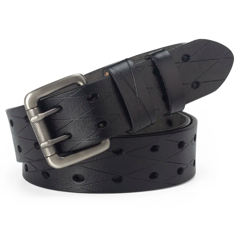 The Iron Double – Patterned Cowhide Belt with Twin-Track Toughness